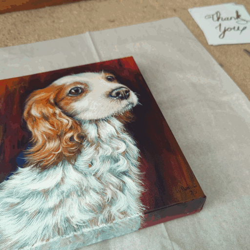 Once the varnish has fully cured, the final step is preparing your pet portrait for its journey to you.